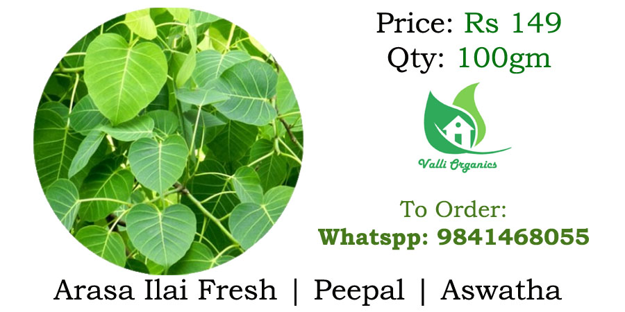 Arasu is a well known tree for all people of India. It grows all over India in all climate conditions. Its leaves are collected and available online as fresh leaves. It is being used by our people since ancient days.