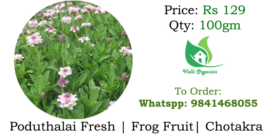 It is called as Frog Fruit or Turkey Tangle in English, Bhukokara or Chotakra or Jalpapli in Hindi, Bokenaku or Mosalipappu in Telugu, Jaltippali or Anakoluppa in Malayalam, Nelahippali in Kannada. Its Botanical Name is Phyla Nodiflora.
