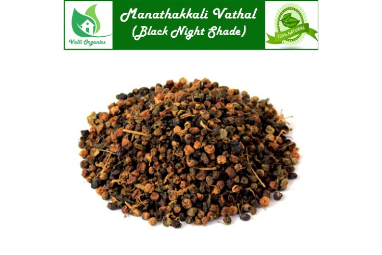 Manathakkali is a small plant grows in wet lands and in crop fields. Its leaves can be used as greens in daily food. Manathakkali vathal are dried fruits of the plant. They are available online as raw. It can be used as an food ingredient. It can acts as a very good milk booster for breast feeding mothers.