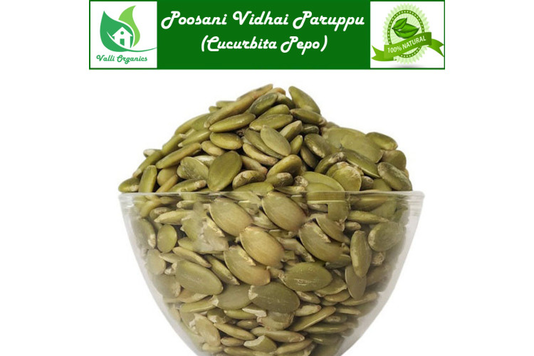 Poosani Vidhai Paruppu are the deshelled form of Pumpkin Seeds. It is natural and can be consumed directly like peanuts. It is rich in proteins and good for health. It can be used as an alternative to Groundnut, Badam, Pistha and Cashew nut upon consuming protein.