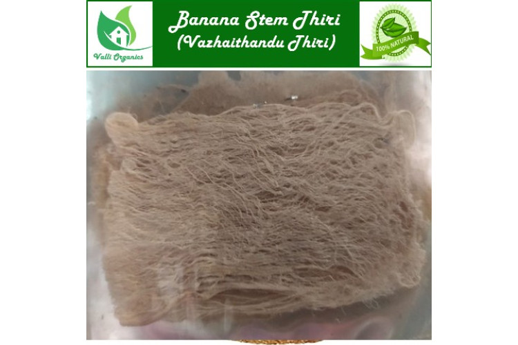 Vazhai Thandu Thiri also called as Banana Stem Wicks in English is prepared from Banana Stem. Those Stems are soaked in water, then the fleshy stem parts are removed carefully, and the remaining fine fibre which looks like ordinary cotton wicks are converted into these Banana Stem Wicks.